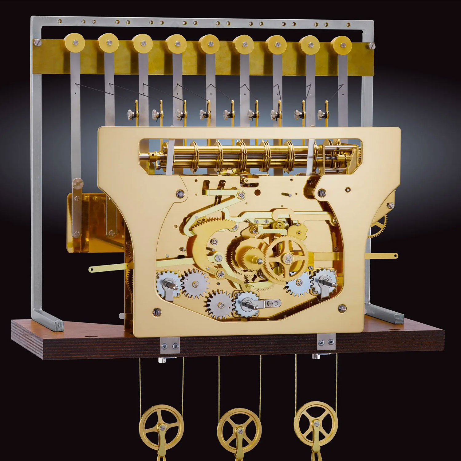 Im Inneren arbeitet ein beeindruckendes 8-Tage-3-Melodien-Seilzugwerk, das wahlweise die Melodien Westminster, Whittington oder St. Michael über hochwertige Tonröhren wiedergibt. Die Uhr schlägt jede Viertelstunde und signalisiert zur vollen Stunde die jeweilige Stundenzahl. Dank der automatischen Nachtabschaltung verstummt das Schlagwerk nachts, was zusätzlichen Komfort im Wohnbereich bietet.