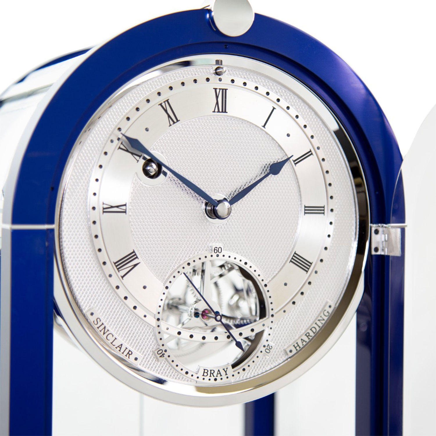 The table clock “Table Regulator” from Sinclair Harding presents itself as a particularly classic clock in a modern case. The combination of modern technology and traditional methods makes the product an eye-catching timepiece. The escapement is a Sinclair Harding modification of the double three-legged gravity escapement, the original design of which comes from Lord Grimethorpe and controls the great Westminster clock in London, better known as Big Ben.