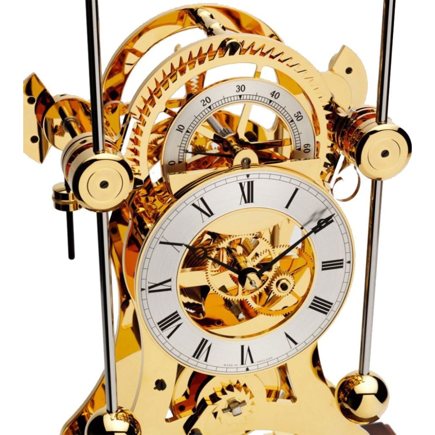 Die Tischuhr „The Navigator“ Gold/Nussbaum ist eine klassische Präsentation des Navigator Grashüpfer-Zeitmessers von Comitti London, die das vergoldete Uhrwerk und den Nussbaumsockel kombiniert.